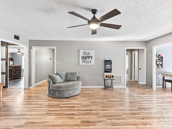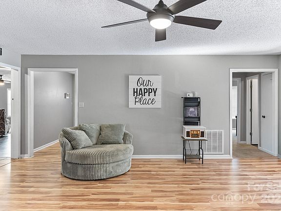 Welcome to this beautifully maintained single-level home offering comfort, updates, and flexible living space in a quiet Asheville setting. Inside, an open floor plan features a spacious living room with modern flooring, fresh paint, and great natural light. The kitchen boasts crisp white cabinetry, dark countertops, and black appliances, with easy access to the dining area and sliding doors leading to a private fenced patio, perfect for outdoor dining or relaxation. The split-bedroom layout includes a generous primary suite with en-suite bath, two additional bedrooms, and a full guest bath. A new roof provides peace of mind, while the finished garage conversion offers a versatile bonus area ideal for an office, recreation room, or den (not included in heated square footage).