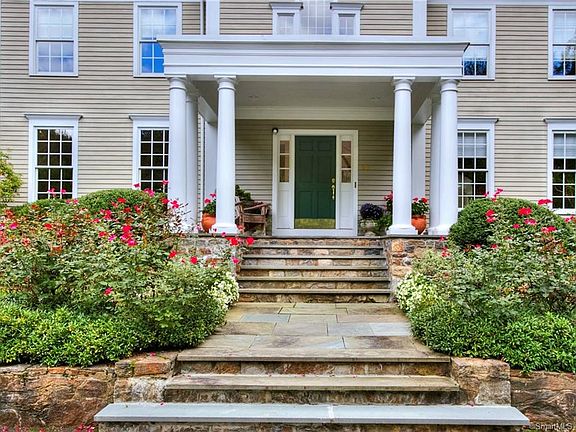 Weston in Bloom This gorgeous beauty is set on two lovely acres of lush gardens with sparkling pool and blue stone patios with panoramic views of surrounding towns. Perfect lower Weston location just minutes to town center, schools, train to NYC, and commute. This home has been lovingly cared for and exceptionally well maintained. Newly finished floors, large dramatic windows, and light filled rooms greet you every morning. This grand Weston home is ready for those discerning clients who desire the best Connecticut has to offer Serene tones of the living areas are bathed in light from the full windows in every room with transoms above the doorways. Custom crafted cherry library and marble-floored atrium provide special sanctuary spaces. The large kitchen, family room, and sun room flow directly through French doors onto tiered blue stone patios, which lead to lush gardens, extensive lawn for soccer or touch-football, and a glistening pool. Second floor has a two-bedroom suite with full bath and play area, three additional bedrooms and a master bedroom retreat with fireplace, jet tub, walk in closet and large windows overlooking the garden. Walk-out lower level with family room, nanny/in-law suite, and exercise room with separate entrance through French doors that lead to garden and pool. This lower level living space could comfortably house a nanny or in-law This home has it all UPDATE Weston voted SAFEST community in Connecticut