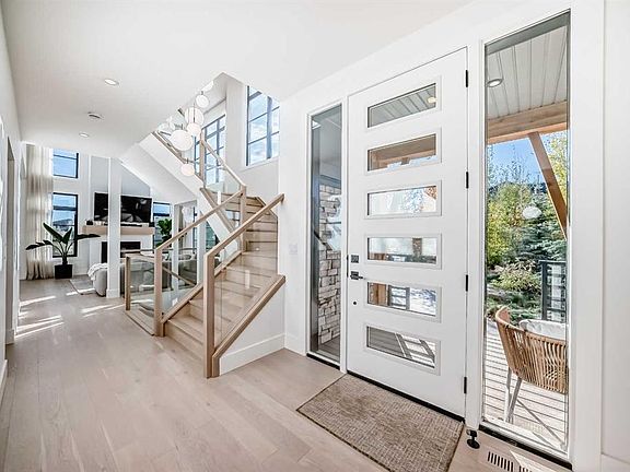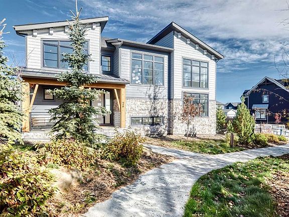 Welcome to this incredible home in Alpine Park. This Wheeler model built by Homes By Dream offers a unique opportunity! Family friendly location fronts directly to a beautiful park with playground, picnic area, and a serene pathway leading to the covered front porch. Siding to a community garden on a wide lot with nearly 60 ft South-facing frontage brings lots of sunlight into the entire home. Incredible upgrades throughout including A/C and a heat pump, additional windows upgraded to a black frame, upgraded hardware and light fixtures, and engineered hardwood throughout the main and upper levels. Step into a gorgeous 2-storey living room with a gas fireplace and oversized South-facing windows bringing in tons of natural light. Bright dining area with plenty of space for a large table. The beautiful kitchen offers pristine full height white cabinetry with some wood tone lower cabinets, a large central island with waterfall quartz counters on two sides, upgraded stainless steel appliances with a built-in wall oven, built-in microwave, and countertop gas stove. Very easy to clean with push open cabinets and drawers, and lots of counterspace for prep! Whistler quartz counters throughout the home. Bonus walk-through pantry and butler’s pantry leads straight to the mudroom and rear attached double garage with an 8 ft door. A private 2-pce bathroom completes the main floor. Upgraded glass railing on the incredible staircase up to the bedroom level. Watch the sunrise from your primary bedroom with a vaulted ceiling, large walk-in closet, and a 5-pce ensuite with a large 10mm glass shower with a bench and upgraded dual showerheads, separate soaker tub, & dual sink vanity. An open bonus room with vaulted ceiling, convenient upper laundry room, 2 large kids’ rooms (one with walk-in closet), and a 4-pce upper bathroom with soaker tub/shower combo. The unfinished basement has great potential with roughed-in plumbing and tall ceilings. This home is solar-ready plus has Hardie board siding. The 11 ft x 10 ft deck has a gas line for a bbq or fire pit and freedom to finish the yard as you imagine. The small monthly condo fee of $104.82 includes the HOA fee for Alpine Park as well a snow removal in the lane and upkeep of greenspaces.