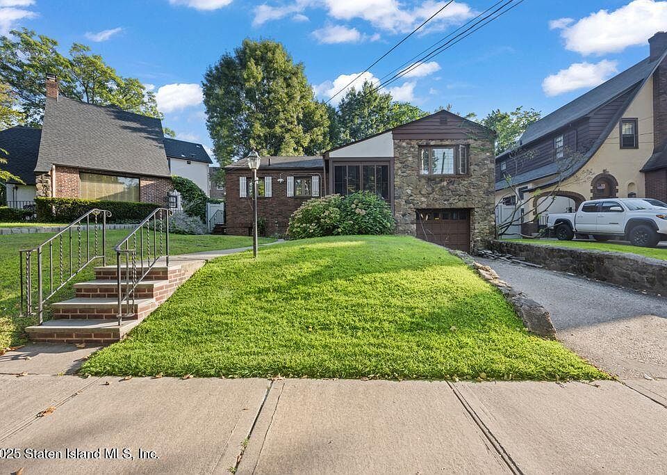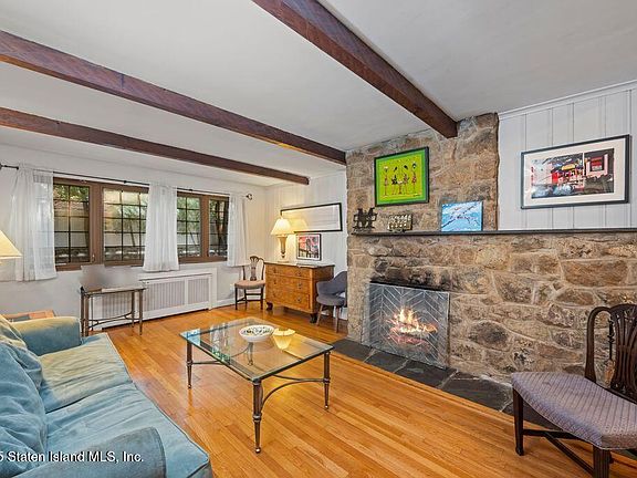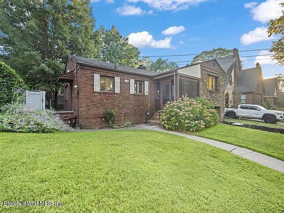 Located on a picturesque street near Allison Pond and the Snug Harbor Cultural Center, this lovely brick and stone home offers a unique layout, a wood burning fireplace, finished basement, garage, breezeway, and beautiful yard for peaceful retreat.