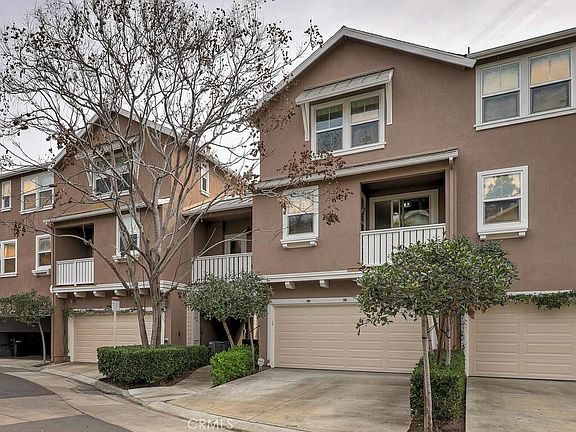 Rare premier property in Valmont community of Ladera Ranch! This charming townhouse offers amenities few others can boast. One of 6 units with its own 2 car full driveway and one of 8 units with an added tech space and additional balcony at the front of the home with an extra storage closet. Open floor plan with no one above or below. As you enter the home through a tree-lined courtyard, you will find a laundry room that accommodates a full-sized stackable washer and dryer. Additionally, the first floor has a flex space to meet your own needs (exercise room, office, den, reading room, etc.) and direct access to the 2-car garage. Upstairs you find the main living space with a switch activated gas fireplace, ceiling fan, and custom built-in shelves. The dining area has slider access to a 2nd private, covered deck perfect for your morning coffee. Spacious kitchen with generous cabinetry and granite counters. An updated powder room completes this floor. The top-level features dual, primary, en suite bedrooms, both with ceiling fans, upgraded vanities and walk-in closets. Fresh paint, high ceilings and neutral flooring throughout. Neighborhood was re-piped with premium PEX piping. The HOA includes, free internet, clubhouses, pools, water park, spas, parks, sport courts, dog park, skate park, tennis, and much more. This is one you don't want to miss!