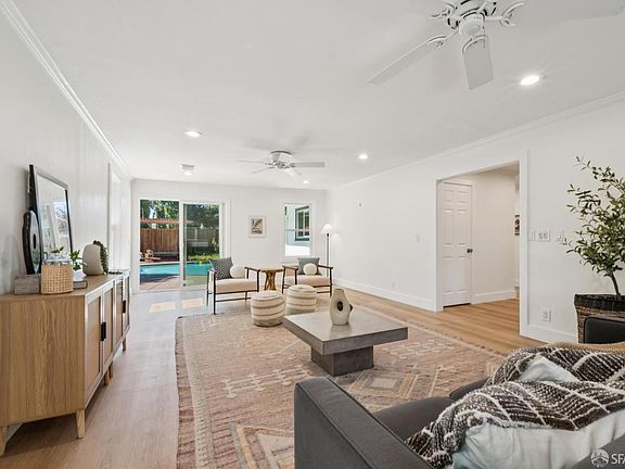 Newly renovated home set on a rare flat half-acre, this 3,189 sq. ft. single-level home offers the perfect balance of modern comfort and California living. Home recently underwent renovations and upgrades throughout the home for a modern and inviting feel. Designed for both relaxed daily life and effortless entertaining, it features 4 spacious bedrooms, 3 full baths, and open, light-filled living areas that flow seamlessly outdoors. The chef's kitchen is anchored by a large island, double Advantium ovens, and abundant storage. A versatile bonus room offers space for a media lounge, playroom, or guest suite, while a private office creates an ideal work-from-home setup. Outdoors, a sparkling pool and landscaped gardens create a resort-like setting, with ample room to add an ADU for even greater flexibility. Energy-efficient details include dual-zoned heating and A/C plus owned solar panels for both the home and pool. With top-rated schools, parks, and shopping just moments away, this property brings together privacy, thoughtful design, and endless possibilitiesall in one of Alamo's most desirable locations.