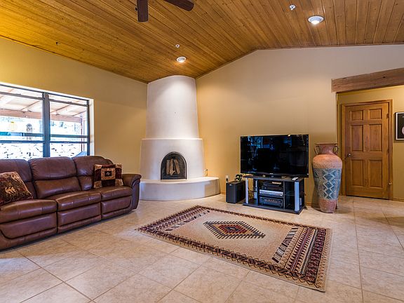 This is a custom home on a private, wooded, peaceful and fenced 1.5 acres. Wonderful views, high end finishes, beautiful split floor plan with great separation! Built in 2006 this home boasts a private master bdrm, office/den, formal and kitchen dining, radiant floor heating, granite counter tops, marble & tile flooring, marble showers, kiva wood fireplace in the living room for cozy winter nights, cedar lined ceilings, solid wood doors, and custom lighting. This home has a gated entry and is completely fenced, bring the animals and let them roam. If your looking for a home where you can sit and enjoy the sights and smells of Ponderosa trees as the breeze gently sings through their branches, then you need to come experience for yourself what a treat this property truly is. There are walking paths through out the property to private seating areas where one can truly enjoy nature. There is a 10X20 storage on the property with natural lighting that would make a perfect art studio or work space. Home is easily accessible and makes for a short commute to Santa Fe and every other modern convenience.