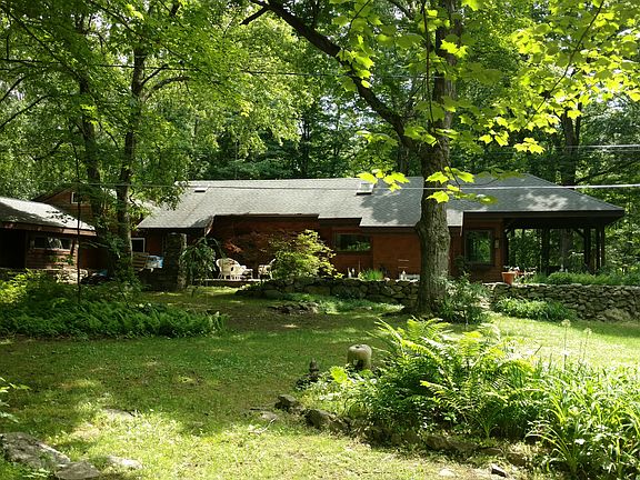 This unique property offers 3 separate homes; 3,207 SF main house, 1 bedroom stone cottage & 2 bedroom bungalow. Both cottage & bungalow are rented earning $2,800 monthly. That rental income pays down $500,000 of the mortgage. The lifestyle possibilities are endless; use as a country retreat, weekend getaway, family compound, guest quarters, caretaker's cottage, Airbnb or income producing rentals. In 2006 a dramatic restoration occurred around a vintage 1926 Adirondack lodge. Architecturally stunning design with dramatic open spaces, soaring ceilings, abundant natural light & airflow all create refined living in a country atmosphere. Main home boasts: 240 SF covered veranda, 520 SF commercial grade chef designed kitchen, 400 SF DR all with 16 foot soaring ceilings, romantic LR with stone FP, library, lavish master suite, 2nd BR in antique cabin, 2 camp styled sleeping lofts & granite full bath. Create your very own private, tranquil & serene oasis. Truly rare & spectacular offering.