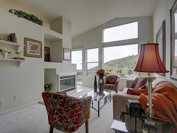 Beautiful Terrabay Village semi-detached townhouse. Top of the hill. Sunny and bright with stunning bay and mountain views. Open floor plan with eat-in kitchen access to deck. Desirable location at end of Cul-De-Sac. Huge storage area. 2 car garage. High vaulted ceilings and cozy fireplace. Must see!