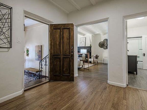 Welcome to this extraordinary 2 bedroom, 2 bathroom condominium located in an elegant Spanish revival style building with a large courtyard and welcoming fountain. Spanning approximately 1,600sf, this unit located on the first floor, offers a blend of comfort and modern amenities. The formal entry with 2 closets leads to the grand living room boasting a striking fireplace and a delightful dining room adjacent to the recently updated kitchen equipped with newer appliances, including a dishwasher, microwave, electric oven range, refrigerator, and a wine refrigerator. The home features high ceilings and beautiful hardwood flooring throughout, adding elegance and warmth to the living spaces. The 2 spacious bedroom suites have ample closet space and one of the bedrooms has a tiled alcove that can be used as an office or workout area.