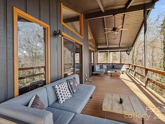 Escape to this turnkey, smartly-furnished 4-bedroom, 2-bath retreat; where vaulted ceilings and an open floor plan create a bright, inviting space. Inside you'll find an updated kitchen that flows into dining and living space with large A-frame windows. You'll enjoy two propane fireplaces; one with stone detail on the first floor in the great room, and a second in the basement den. Relax on the large upper deck with mountain views & privacy, or soak in the hot tub below. Outdoors you'll also find a fire pit and fully fenced in yard. This sale includes a second parceled lot of 0.4 acres next door. Nestled in Maggie Valley County Club Estates, this community boasts a stunning golf course where mountain views abound. This home is perfect for an investment property getaway, a second home, or full-time living. Exceptional cell service! Don’t miss this mountain escape!