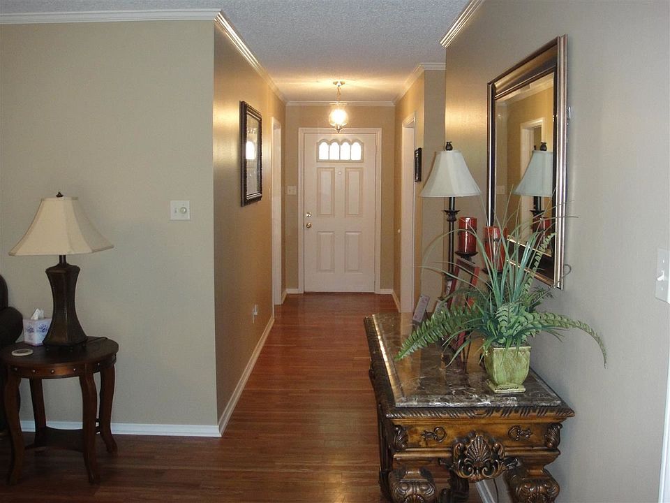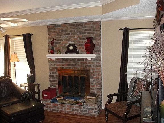 Nice clean home, split master suite, tray ceiling, neutral colors, full extension drawer in pantry. big ceramic tiled shower in master bath. Boxed ceilings in den, office and master . Surround sound in den with wood burning fireplace. Covered patio, 8 ft. X 10 ft. storage building, wood privacy fenced.