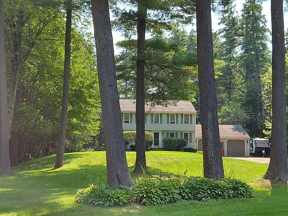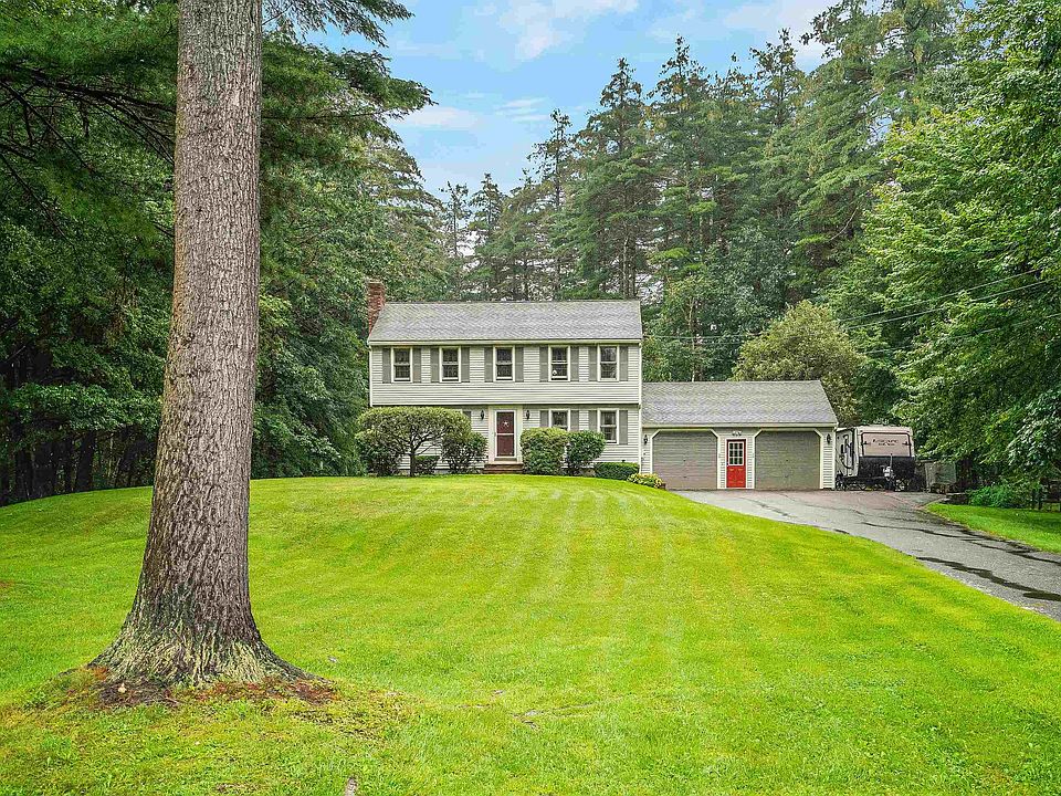 Brimming with outstanding curb appeal this charming and inviting Garrison style home sits on 1.38 lush and wooded acres in one of Hampstead's most sought after neighborhoods. This delightful, well cared for home features a freshly painted interior, all natural woodwork, 6 panel solid wood doors, sun drenched country kitchen with loads of cabinets and peninsular countertop with counter seating. The kitchen also affords a separate breakfast/dining area with sliders accessing the double-sized (12x12 and 14x17) deck with mahogany floor, and expansive backyard, both of which are ideal for summer gatherings or maybe a future pool. The large family room with wood burning fireplace insert is perfect for cozying up to on those cold winter (or fall) nights. A nice sized living room and a 1/2 bath with laundry hook-ups complete the first floor. The spacious 2nd floor master bedroom has a walk-in closet and its own 3/4 bath. Two additional good sized bedrooms, one of which is extra large and has 2 double closets, and a full guest bath round out the 2nd floor. The oversized attached 2 car garage with storage above has direct access to the kitchen and backyard. The private backyard with fruit trees, loads of colorful perennials and separate garden area is sure to please the horticulturist in you. There's even a dedicated area with shelter for your fur babies. Sale contingent on seller finding suitable housing. SHOWINGS START AT OPEN HOUSE, SUNDAY 8/27 12P-2P
