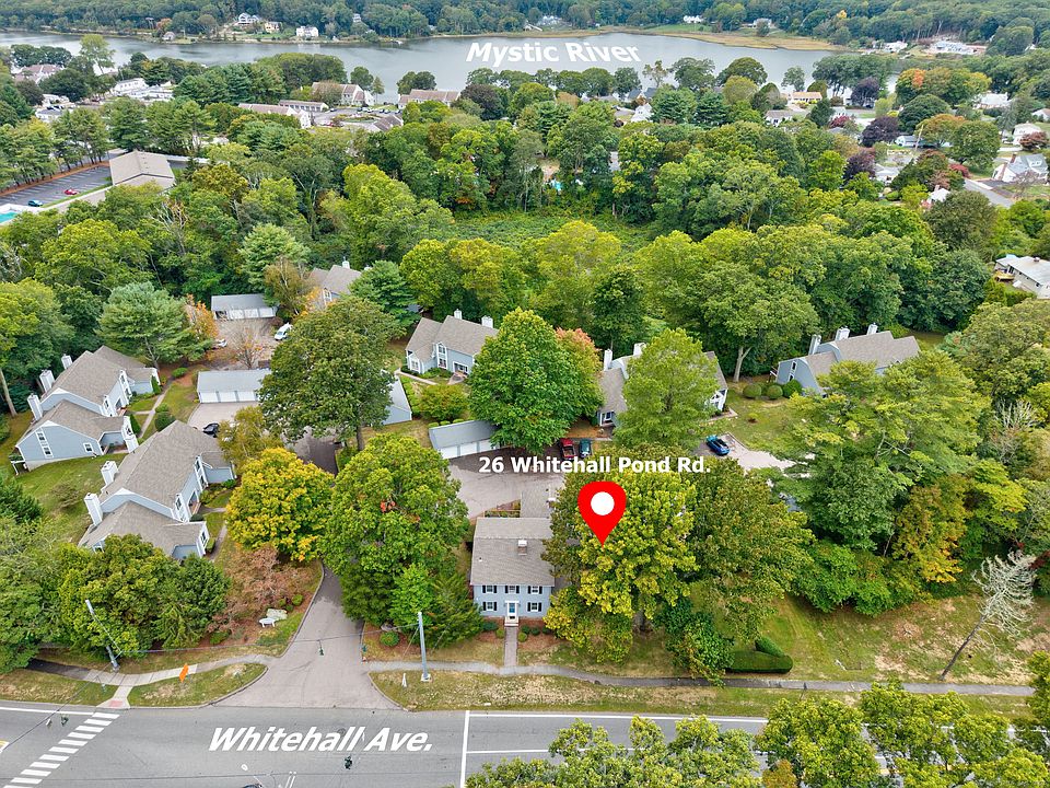Welcome to 26 Whitehall Pond, Unit 26, an immaculate two-bedroom condominium in the heart of Mystic. Offering one-level living with a private entrance up a single flight of stairs, this home combines comfort, convenience, and a highly sought-after location. Inside, you'll find a bright and open floor plan featuring hardwood floors, recessed lighting, and a spacious living room filled with natural light. The kitchen is beautifully appointed with granite countertops, stainless-steel appliances, and ample cabinetry, and it flows easily into the dining area where sliding glass doors open to a generous deck-perfect for enjoying your morning coffee or relaxing at the end of the day.Both bedrooms are warm and inviting, with the primary bedroom offering double windows and a peaceful retreat. The full bath is thoughtfully designed with a soaking tub, glass shower, marble-top vanity, and convenient in-unit laundry. Modern mini-split systems provide efficient heating and cooling, and the detached garage adds both parking and storage.Nestled in a well-maintained community surrounded by mature trees, this home feels like a private retreat while being just moments from all that Mystic has to offer. Olde Mistick Village, the Mystic Seaport, the Mystic River, and countless shops and restaurants are right at your fingertips, while easy access to I-95 makes this an excellent choice for commuters heading toward EB, Pfizer, the Sub Base, or points between New York and Boston. Move-in ready!