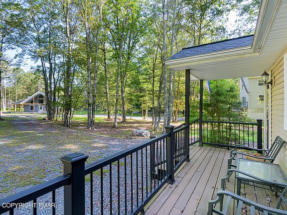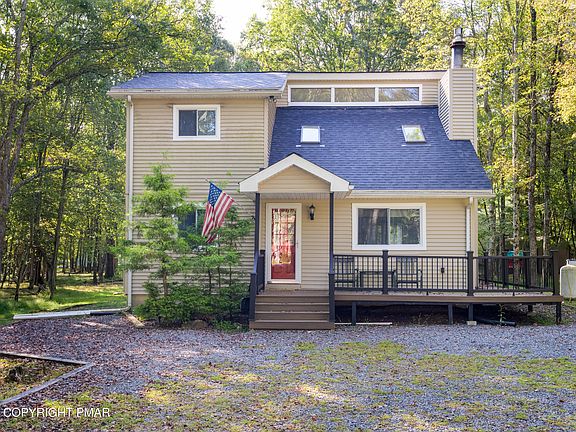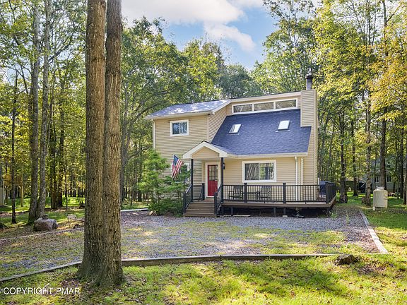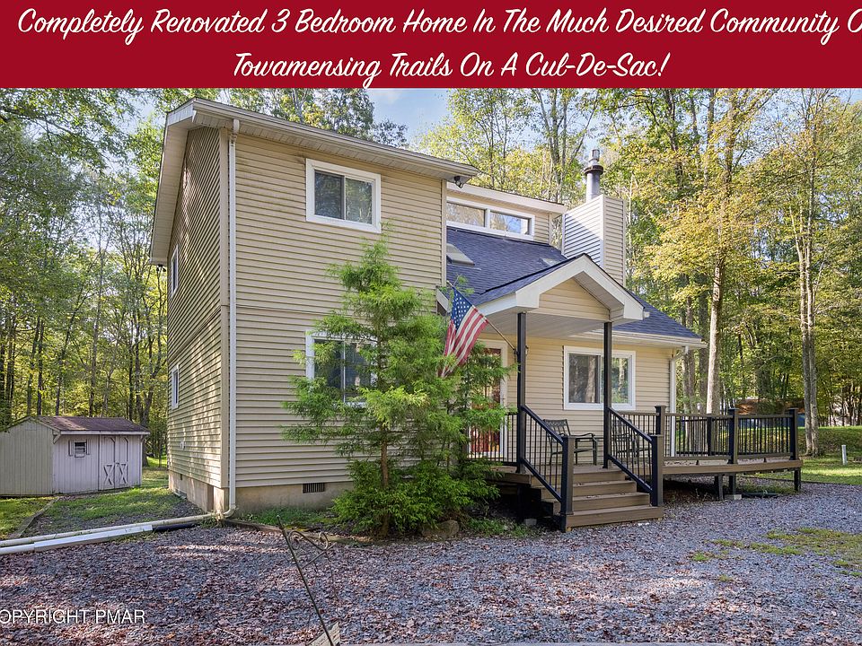 This One Is It! Located At The End Of A Cul-De-Sac On Almost An Acre! Set Back From The Road For Extra Privacy! Long Driveway, For Lots Of Parking! Spacious, Level Front & Back Yards! Over 750 Feet Of No Maintenance Wraparound Decking! Back Yard Shed For Extra Storage! New Roof, Vapor Barrier & Dehumidifier In Crawl Space! But Wait Until You Enter! Main Level Has Open Concept Spacious Living Room With Custom Stone Propane Fireplace For Style & Warmth! Beautiful Luxury Flooring Throughout. Oversized Dining Room With Sliders To Back Deck. Kitchen With Stainless Steel Appliances, More Cabinets Than You Will Ever Need & A Breakfast Bar For Easy Mealtimes! The Hallway Leading To The Primary Bedroom Gives It Extra Privacy With Its Entryway Doors. Completely Renovated Full Main Bathroom Has Laundry Closet For Convenience! But Wait That's Not All 2nd Level Has Huge 13 X 14 Loft For Another Living Space, Two Additional Spacious Bedrooms & Another Completely Renovated Full Bathroom! All Of This Located In The Wonderful Low Dues Community Of Towamensing Trails With It's Many Amenities! Get In By Fall & Enjoy The Many Things To Do In The Heart Of The Poconos!