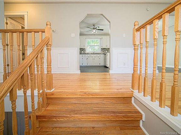 Beautifully updated split-entry home in the heart of Oromocto West, where style, comfort, and convenience come together seamlessly. The main level features a bright and spacious living room with a heat pump for year-round comfort. The modern kitchen is a chef’s delight with crisp white cabinetry, a pantry, glass-tile backsplash, and peninsula with breakfast bar. Patio doors off the dining area open to a private deck and fully fenced backyard, perfect for entertaining or enjoying peaceful evenings outdoors. Three well-appointed bedrooms are located on this level, including a primary suite with walk-in closet and private access to the main bath. The lower level offers incredible flexibility with a large family room, a second heat pump, patio doors to the backyard, a 4th bedroom, and inside access to the attached garage. Situated close to Anniversary Park, scenic walking trails, and the Saint John River, this home offers the perfect balance of peaceful living and convenience. Oromocto provides an exceptional lifestyle with excellent schools, recreation facilities, shopping, and more. Military families will appreciate the quick access to CFB Gagetown, while commuters are just 15 minutes from Fredericton.