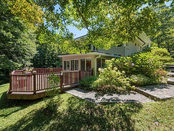 Cozy & completely unique home in Southern Ridgefield, walking distance to Branchville Train, Restaurants & Shops. Custom built home blends into the landscape drenched in natural light with high vaulted ceilings, lots of windows, skylights & oversized wrap-around deck designed to flow into the private yard with flowering perennials. Endless space, storage (so many closets!) and natural light. Commuter's dream tucked just off Rt 7 in quiet neighborhood & near beautiful Weir Farm national park. ~ 4 or 5 bedrooms, 2 full and 1 half bath, two garage bays divided by a wall for more storage and options. A home like no other in a fabulous location... welcome home! Lease may be possible! Short term or up to 2 years. Less than an hour to Midtown Manhattan! Work-at-home OR Commuter's dream home.