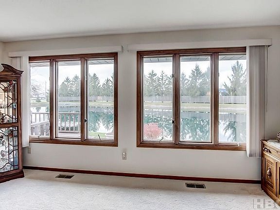 This spacious condo overlooking the water is conveniently located near all of the eastside amenities! An abundance of windows line the back of the condo providing great natural light and wonderful views throughout. The kitchen boasts Corian counters, a large pantry and includes all appliances. Adjacent to the kitchen is the formal dining room with vaulted ceiling and French doors leading to the large living room with gas fireplace. A bonus room next to the living room could be used as an office, hobby room, or sitting room. Both bedrooms are large and have generous walk-in closets. The master suite features a private bath and an second closet for added storage. The separate utility room, complete with washer and dryer, also features an extra- deep closet. The attached two-car garage provides even more storage with shelving and cabinets lining the walls. Outdoors you will find a patio and deck with power awning for shade, providing you with a nice space to enjoy the private view of the water and nature. Condo fee of $145/mo. covers water, sewer, trash, lawn care and snow removal.