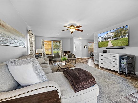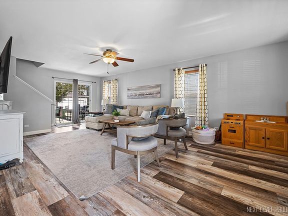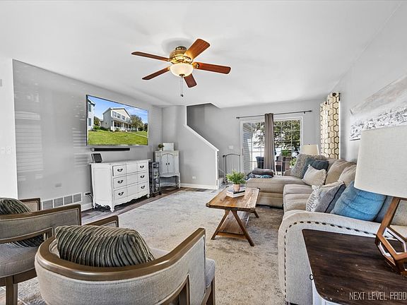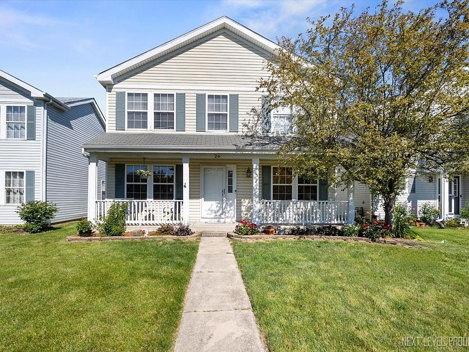 Charming farmhouse-style home in the heart of Ogden Falls boasts a full front porch elevation, inviting you to relax and enjoy the surroundings. Recently updated with a new stainless steel range, dishwasher, fridge, and microwave, the kitchen is both stylish and functional. Throughout the first floor, wide plank luxury vinyl flooring enhances both beauty and durability. The main floor powder room has been tastefully updated, and the home features two new commodes for added convenience. Ample shelving in the large pantry provides excellent storage solutions. This model includes a full basement, offering endless possibilities for customization, with a full bath rough-in already in place. Exterior maintenance is handled by the association, ensuring carefree living. Across the street, an open park-like common area adds to the charm. Conveniently located near shopping, restaurants, and with easy access to I88, this home offers both comfort and convenience.