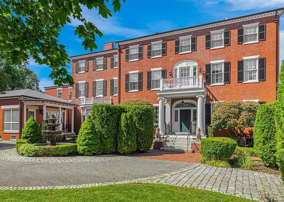 Steam showerFederal-style estateBrick carriage house additionPrivate balconyOpulent primary suiteFour-layer fountain terraceUpdated windows