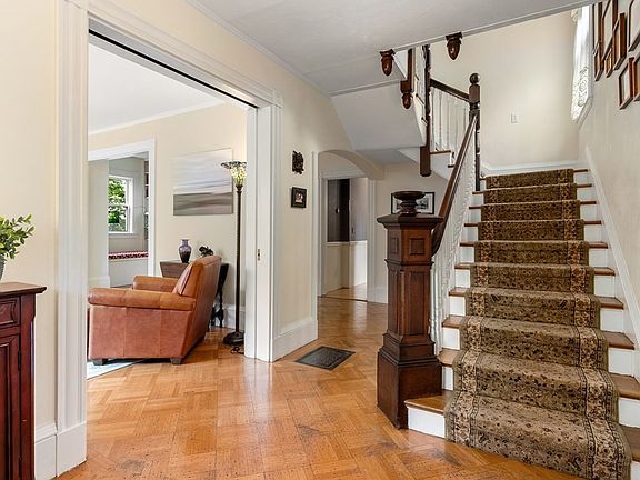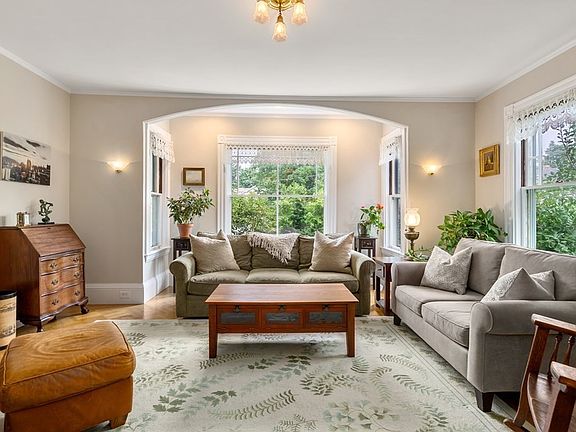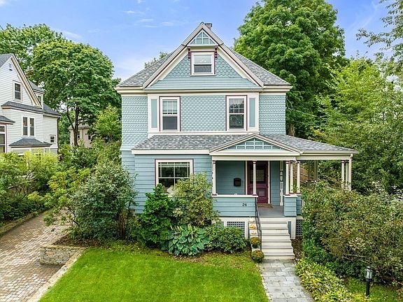Modern amenities are exquisitely blended with traditional charm in this Victorian masterpiece. Ideally situated near the center of Auburndale, this stunning property is convenient to restaurants, shops, parks, and the train station. Set on a lovely lot with luscious landscaping, flat stoned patio, and idyllic wrap around porch, this home offers entertaining options both inside and out. Its soaring ceilings, wide hallways and grand staircase lead you seamlessly through its three levels of fine living space. Its main floor flows flawlessly from the front door through the living/dining area to the incredibly cozy back sunroom. Three nicely sized bedrooms, an office option and newly renovated full bath fill the second floor. The entire third floor is the primary bedroom retreat with many storage options and fully renovated bathroom. Recent updates to the roof, driveway, exterior paint, renovated bathroom and more. Stunning home inside and out in a downtown neighborhood. This won't last!