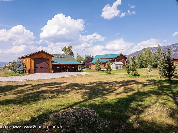 CUSTOM HAND-HEWN LOG HOME on Cedar Creek. This one-of-a-kind log home offers the perfect blend of rustic charm and modern comfort, set in a stunning natural setting along year-round Cedar Creek. The open floor plan and thoughtful finishes create a warm, welcoming retreat with breathtaking mountain views from every window. Hickory hardwood floors throughout. Striking elk antler chandelier and a grand stone fireplace. Gourmet kitchen featuring stainless steel Maytag appliances with washer/dryer included, double fridge. Covered side porch with 34' x 14' redwood decking. 36' x 36' carriage house with 3 car garage and 51 x 24' RV barn. Amish-built greenhouse with in floor heat. This extraordinary property combines timeless craftsmanship with modern amenities in a serene private setting.