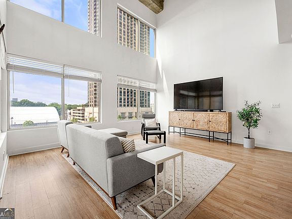 SELLER WILL PAY 3 MONTHS HOA and PROVIDE BONUS STORAGE UNIT LOCATED ON PROPERTY. Introducing Luxury Living 3 bedroom 3 bath condo in the sought after District Lofts, located in Atlantic Station. This Unit offers breathtaking, unobstructed, South facing views of Midtown! The Kitchen features sleek quartz counter tops, stainless steel appliances, Large Island overlooking the family room. The family room features 22' exposed industrial chic ceilings with large expansive windows. The covered balcony off the family room is perfect for relaxing evenings gazing at the city skyline! Main level has a full size bath and spacious bedroom. Upstairs features laundry closet, Large Master Bedroom with dual vanity sinks, soaking tub and upgrades throughout. The third bedroom is spacious and features views of Atlantic Station and has a full size bath just steps away. Exclusive unbeatable gated (2) private parking spaces all for you! Seller has bonus storage unit located on the second floor along with condo! Don't miss this opportunity to own in the work, play, lifestyle heart of Atlantic Station, just steps aways from shopping, dining, entertainment, public transportation, gym and much more! Residents also enjoy a discount to shops and dining in Atlantic Station. Another added bonus to living in the beautiful District Lofts!