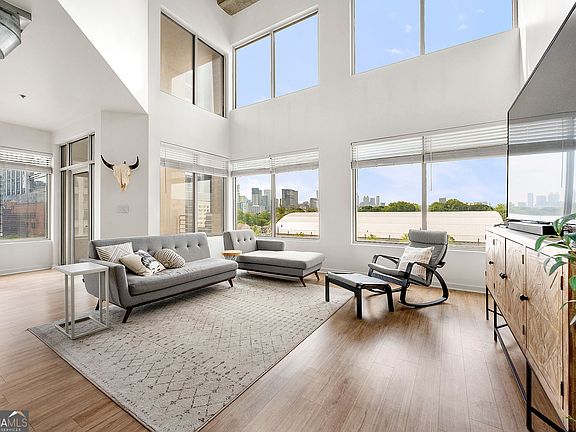 SELLER WILL PAY 3 MONTHS HOA and PROVIDE BONUS STORAGE UNIT LOCATED ON PROPERTY. Introducing Luxury Living 3 bedroom 3 bath condo in the sought after District Lofts, located in Atlantic Station. This Unit offers breathtaking, unobstructed, South facing views of Midtown! The Kitchen features sleek quartz counter tops, stainless steel appliances, Large Island overlooking the family room. The family room features 22' exposed industrial chic ceilings with large expansive windows. The covered balcony off the family room is perfect for relaxing evenings gazing at the city skyline! Main level has a full size bath and spacious bedroom. Upstairs features laundry closet, Large Master Bedroom with dual vanity sinks, soaking tub and upgrades throughout. The third bedroom is spacious and features views of Atlantic Station and has a full size bath just steps away. Exclusive unbeatable gated (2) private parking spaces all for you! Seller has bonus storage unit located on the second floor along with condo! Don't miss this opportunity to own in the work, play, lifestyle heart of Atlantic Station, just steps aways from shopping dining, entertainment.