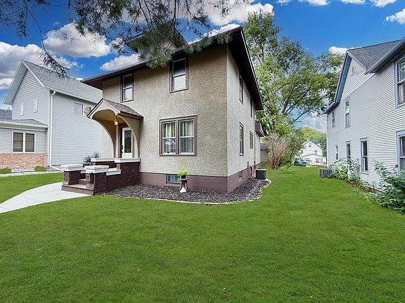This home is worth seeing! An American Four Square Craftman early 1920s home with a blend of modern appeal. The exterior stucco has been well maintained and the home has updated windows. As you enter the foyer you step into the living room will see the flow of original hardwood floors both on the main floor and upper level. Continuing you will find the informal dining area open to the updated kitchen. The cabinets, counters and fixtures have all been updated and has newer stainless steel appliances. Probably one of the best features of the home is the large primary bedroom on the main floor with its own private walk in closet and full updated tiled bathroom ensuite. The upper level has 3 bedrooms and another space that could be a play room or office and large full bathroom. The furnace was recently replaced. The basement houses the laundry and utilities but is spacious fo added living space to finish, or for storage or exercise equipment. The back yard leads to the one car detached garage with a newer sidewalk path. For cool autumn nights, you could sit in front of your outdoor fireplace. Highly recommend checking this one out!