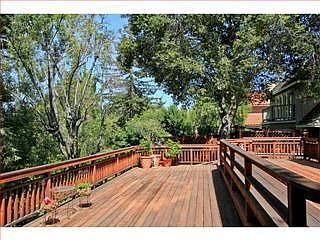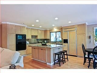 Living room w/ tall vaulted ceiling & granite fireplace, formal dining area. Kitchen & family room ensemble opens to a huge two-level deck overlooking the seasonal Adobe. The kitchen features gleaming granite slab counters & a center island. Family room has a grand fireplace outlined in granite slab plus built-in cabinetry. Desirable North Los Altos neighborhood just minutes to the Village.