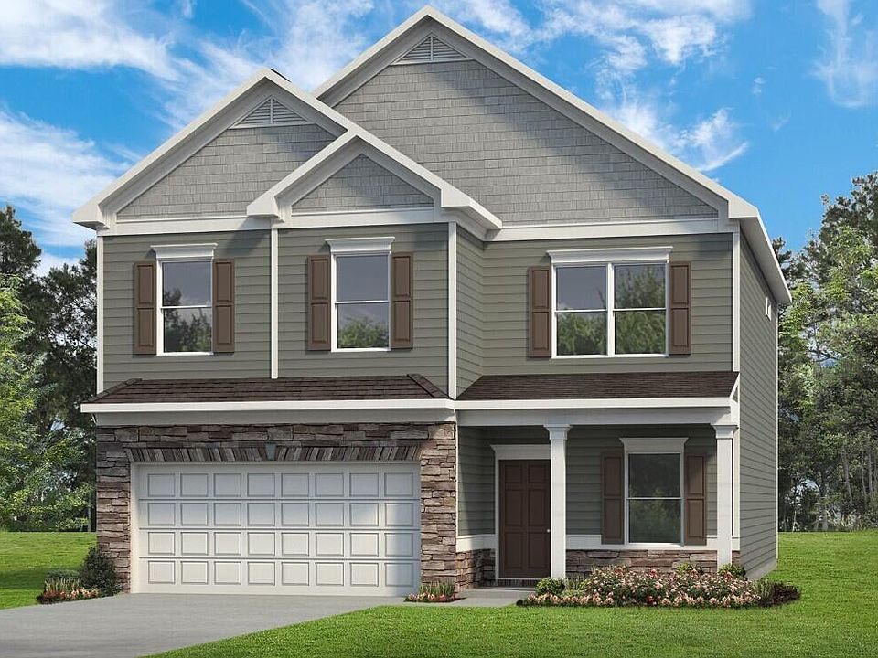Smith Douglas Homes presents The Harrington plan at Wellesley - THIS HOME IS UNDER CONSTRUCTION WITH AN ESTIMATED COMPLETION DATE OF MARCH 2026. Welcome to The Harrington, a thoughtfully crafted two-story home offering 2,565 square feet of modern living space. Featuring four spacious bedrooms and two and a half bathrooms, this home perfectly blends functionality and sophistication. Step inside to an open and inviting family room enhanced by extra windows that fill the space with natural light. Cozy up on cool evenings by the wall-mounted fireplace, surrounded by elegant luxury vinyl plank flooring that spans the entire main level. A separate living room at the front of the home offers flexible space ideal for a home office, study, or formal sitting area tailored to fit your lifestyle. The expansive kitchen is a true showpiece, complete with a large chef's island, granite countertops, hardwood cabinets with crown molding, a farmhouse-style sink, stainless steel appliances, and a dedicated pantry. Additional under-stair storage provides space for an overflow pantry or seasonal items. A charming breakfast nook sits adjacent to the kitchen with easy access to the back patio, perfect for grilling or relaxing with friends. Upstairs, the open iron railing leads to a spacious Owner's Suite located at the rear of the home. The luxurious en-suite bath features a large walk-in shower, double vanity with quartz countertops, and an oversized walk-in closet with dual entries. The remainder of the upstairs includes three additional bedrooms, each with walk-in closets, a full bathroom, and a conveniently located laundry room. Plush carpeting throughout the second level adds warmth and comfort. Located in the amenity-rich Wellesley community, residents will enjoy a swimming pool, covered pavilion, tennis and basketball courts, dog park, playgrounds, and scenic walking trails. Ideally situated with convenient access to major freeways, restaurants, grocery stores, and shopping. Experience a thoughtfully curated home that balances modern style with everyday functionality—crafted by Smith Douglas Homes.