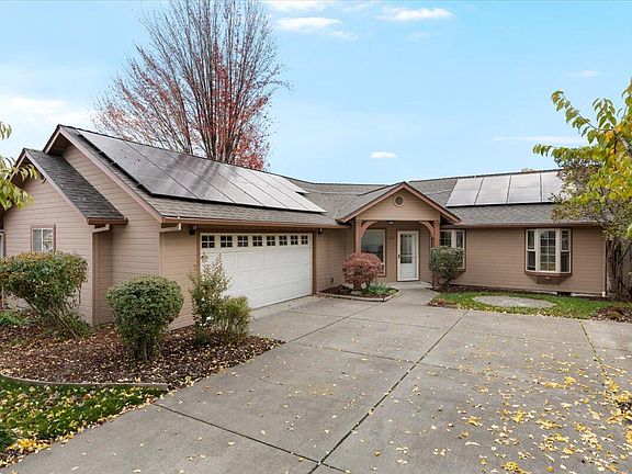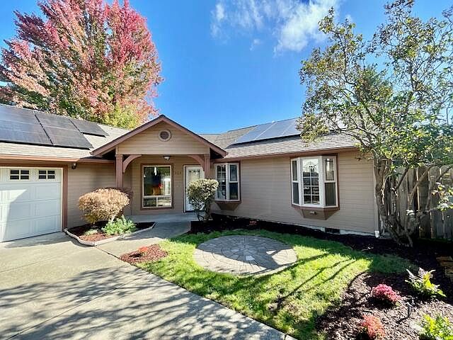 Welcome to 260 Arnos Street — a peaceful retreat tucked away in one of Talent's most convenient locations close to downtown Talent and just minutes from Ashland! This beautiful 3-bed, 2-bath home offers style and efficiency. Bright, vaulted ceilings and an open layout center around a cozy gas fireplace. The kitchen features quartz countertops, new sink, faucet, and disposal. The primary suite includes private patio access, perfect for relaxing. Enjoy a peaceful backyard with mature landscaping and garden beds. Fully paid-off solar panels keep energy costs low and come with a 20+ year warranty—comfort and savings in one move-in-ready home!