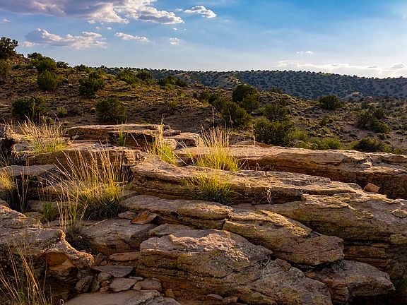Huge views, picturesque stone outcroppings and desert solitude. Listing is now for the entirely of 40 acres, two houses, two wells, with life-estate/use agreement to be granted to two residents who will have use of the smaller of the houses and 13 acres. Primary residence will have use of 27 high-desert acres with off-grid adobe and stone home in the round built into the earth for efficiency, with high ceilings, framed addition and attached greenhouse. 3 bedrooms and 1 bath, solar panels. Loved by the same owners/builders for four decades, the home needs work and is ready for new energy and care. Start your off-grid homestead. Less than three rough miles from pavement, where you might see grazing cattle or horses, and fifteen to twenty minutes to Interstate 25, depending on how you drive. Will not qualify for a normal mortgage, owner may finance with $65k down. Second home shown upon acceptance of offer.