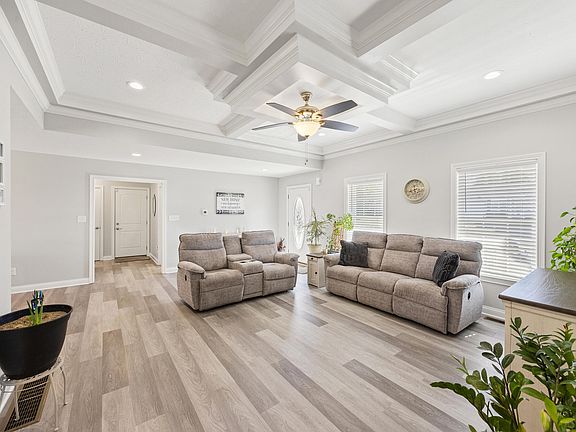 Welcome to this thoughtfully upgraded and meticulously maintained home where value meets lifestyle. The finished walkout basement adds versatility with an extra bedroom, full bath, storage room, and kitchenette ideal for movie nights or hosting guests. Though the yard isn't large, it's inviting with two outdoor spaces and a capped gas line ready for your grill, while the low-maintenance rock landscaping enhances curb appeal. Inside, energy efficiency shines with a gas on-demand water heater, foam insulation, and 2x6 walls to keep utility costs low. The living room features elegant coffered ceilings, and the primary bedroom offers tray ceilings and double closets. Bathrooms and kitchen boast updated granite countertops. A new carriage-style garage door with windows is being installed to further elevate the exterior. Conveniently located just minutes from I-75 and near Bucees in Richmond for quick errands or snacks, this home is ready for you to move in and enjoy.