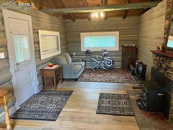 **New Roof has been completed** One of a kind 1.01 acre property that’s equestrian friendly, flat & buildable, with an existing 962 sq. ft. rustic ADU/Guest cabin offering numerous building possibilities, which include an AirBnb. The property is located in the County, which is zoned for one or more horses. The lot is treed, level, no HOA, CSU utilities and plenty of space to build a 30’x50’ equestrian barn or new home, while utilizing the existing log cabin as a ADU/Guest cabin/Airbnb. This charming 1914 log cabin, features 2 bedrooms and 1 bath, and an attached two-car garage, offers a rare glimpse into rustic living while maintaining its original character. Modern utilities have been upgraded over the years, but the cabin retains its rustic charm with original log beams and hardwood floors. The interior boasts vaulted ceilings and a stone fireplace, with a Fisher fireplace insert, complemented by a partially remodeled kitchen with a granite countertop, a stainless steel farm sink & modern appliances. The bathroom features a classic claw-foot tub and an updated pedestal sink. Located just above Bear Creek Nature Center, the property offers access to 1,500 acre Red Rocks Open Space (Equestrian friendly), Section 16 & Bear Creek Nature Center literally blocks away. This property presents an exciting opportunity for the new owner to expand on the existing land. This property is also conveniently located in El Paso County, while the East side of Bear Creek Road is in the City of Colorado Springs. Extensive equestrian trails, biking & hiking trails, all while being just 2 miles from Old Colorado City, with shopping & restaurants offers a rare & unique living experience!