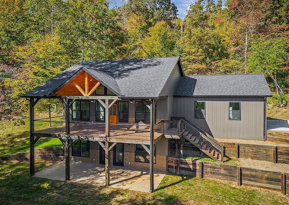 Minutes from Dale Hollow Lake, this stunning 2025 Monroe Builders home sits on 16 acres—8 wooded and 8 open. This custom-built property features 3 bedrooms and 3 full bathrooms, with each bedroom offering its own private bath. Designed for comfort and accessibility, the home includes two laundry rooms—one on the main level and one in the basement—and is handicap accessible on both levels with wide doorways and a private basement entry. The open-concept kitchen and living area feature beautiful 9' trey and cathedral ceilings, leading to a massive covered Trex deck perfect for enjoying peaceful sunrise views. The basement includes a second large covered patio, ideal for entertaining or relaxing. Premium finishes include hardwood and LVT flooring, tile showers, and high-density insulated vinyl siding. The property is livestock-ready with a water pad and well piping for easy feeding. Additional highlights include a 24' x 22' garage with an 18' garage door. Builder floor plans coming soon.