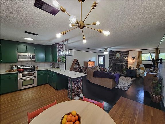 This lovely starter home offers a modern living experience in town. Featuring three bedrooms, two full bathrooms, it boasts a spacious fenced yard with a large storage building. The interior has been recently remodeled, showcasing updated lighting and a fresh, modern look. Great for those looking to start their homeownership journey in style.