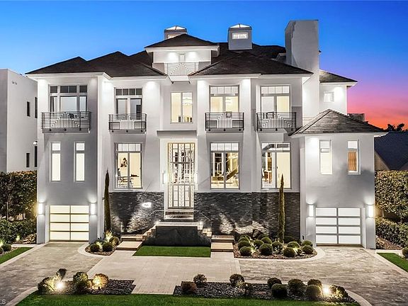 This one-of-a-kind waterfront masterpiece at 260 Channel Drive defines Naples coastal living at its finest. Walk to the powder-white sands of Vanderbilt Beach and enjoy having your boat right in your backyard for effortless Gulf access. Designed for those who appreciate exceptional craftsmanship and cutting-edge architecture, this residence blends glass, steel, and natural light into a breathtaking modern statement. Four levels of inspired design showcase panoramic bay views through walls of glass and expansive terraces that capture the essence of indoor-outdoor living. The exterior sets a bold tone with a granite paver driveway, a 3-car garage featuring frosted glass doors, stainless balcony railings, and a striking glass-and-steel staircase. Step inside through a 12-foot Tiffany-inspired stainless-steel entry door to discover a luminous interior wrapped in pure Thassos marble floors and anchored by a dramatic glass staircase framed in Macassar wood. The gourmet Allmilmo kitchen—crafted in Germany—is paired with Miele and Gaggenau appliances, dual dishwashers, dual laundry sets, and a temperature-controlled wine cooler, blending form and function seamlessly. Every detail reflects European precision and design, from the custom Bartels German interior doors to the Bisazza mosaic tile bathrooms in each ensuite. The primary suite elevates luxury with gold-leaf Bisazza tile and sweeping bay views. A state-of-the-art cinema room offers a 120” screen, 3D anamorphic projector, Bang & Olufsen sound, and Swarovski crystal lighting for an immersive experience. Additional features include an elevator with Swarovski accents, Crestron home automation, and a LightTouch lighting system throughout. The lower level provides a versatile living area with a steam room and direct access to the pool and dock—ideal for guests or a private wellness retreat. Perfectly positioned along the three finger streets in Connors off Gulf Shore Drive, this south-facing residence captures all-day sunlight and the rare combination of beachside convenience and boating luxury. Just steps to Vanderbilt Beach and LaPlaya Beach & Golf Club, and a short drive to The Ritz-Carlton, as well as the upscale shops and dining at Mercato and Waterside Shops, 260 Channel Drive delivers the ultimate Naples lifestyle—where modern design meets coastal serenity.