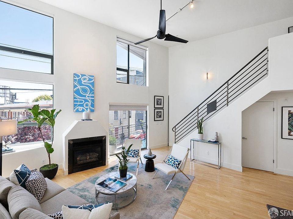 Built 1998, this chic tri-level 2 bed, 2.5 ba live/work loft with balcony & in-unit laundry is in a well-run 8-unit HOA on a well-maintained block at the cross streets of 5th/6th/Folsom/Harrison near dining & cafes, recreation, ElectrifyAmerica EV charging center, SFMOMA, Oracle Park, Yerba Buena Gardens, Metreon and more. This bright and airy loft condo features an open floor plan with high ceilings, hardwood floors, and abundant natural light. Conveniences include in-unit laundry, deeded 1-car garage parking, and storage. The main level boasts an open floor plan for living/dining with a fireplace, an updated kitchen with Shaker cabinets and stainless appliances, a powder bath, and exclusive-use balcony. The upper level offers a primary suite with a full bathroom. The ground floor bedroom and full bathroom has its own private entrance and is perfect for a guest room, home office and/or den. Prime location just blocks from Whole Foods, Westfield Shopping Center, BART, Muni, and easy freeway access. WalkScore 97, Transit Score 100, BikeScore 98 per WalkScore.com! Experience the best of SoMa's arts scene, diverse dining, and proximity to museums, sports, shopping, and transportation. Unlock a quintessential SF lifestyle in one of the city's most vibrant neighborhoods
