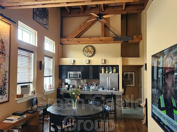This is a VERY cool unit. Currently a 4 bedroom unit, this is being converted to a 6 bedroom for June 1, 2026 to utilize loft space. Two bathrooms - one with a tub and one with a shower. High ceilings, beams, fun colors, big windows. In unit washer and dryer.