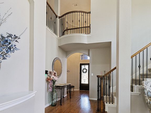 3.75% VA ASSUMABLE LOAN AVAILABLE! Must have VA eligibility. Experience refined living in this elegantly upgraded residence nestled within the highly acclaimed Prosper ISD. From the moment you enter, the soaring two-story foyer creates a dramatic first impression, leading you into a light-filled, open-concept floor plan designed for effortless entertaining and everyday sophistication. The gourmet kitchen is a true showpiece, featuring premium quartz countertops, custom cabinetry, and top-of-the-line stainless steel appliances that seamlessly blend beauty and performance. The expansive living and dining areas flow together in perfect harmony, enhanced by stylish finishes and an abundance of natural light. A thoughtfully designed first-floor guest suite with a full bath offers both comfort and privacy—ideal for visitors or multi-generational living. Outdoors, a covered patio and serene backyard retreat invite alfresco dining, relaxation, and quiet evenings under the stars. Every inch of this home reflects a commitment to luxury, functionality, and modern elegance. Don’t miss the opportunity to call this exceptional Prosper home your own.