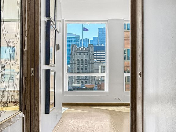 This stunning southwest corner 3-bedroom, 2-bath residence offers sweeping skyline views -- sun-filled by day and sparkling by night! Features include beautiful hardwood floors, floor-to-ceiling windows, a gallery hall, and neutral decor. The spacious living/dining area is ideal for entertaining, while the L-shaped kitchen offers abundant counter space and cabinetry, a wall of custom pantry cabinets, and a large walk-in pantry. The roomy primary suite has a newer bathroom with a private commode and shower, as well as a walk-in closet. Two additional generously sized bedrooms (including one with a walk-in closet) share a hall bath. Plaza on DeWitt is a full-service building offering 24-hour door staff, on-site management, a state-of-the-art fitness center, a newly redesigned club penthouse level club room, a rooftop pool, and a spectacular sun deck with panoramic views of the lake, Navy Pier, and the city skyline. Leased valet and guest parking are available. Perfectly positioned in the heart of Streeterville, this building is steps from Northwestern, the MCA, the Farmer's Market, the lakefront, and Magnificent Mile's shops and restaurants.