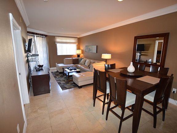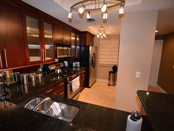 Fully Furnished 2 Bd / 2 Ba Condo just 1 1/2 block to the heart of the Las Vegas Strip located in a 16 Acre Lushly Landscaped Community. Unit is Equipped with granite counter tops, stainless steel Refrigerator, Range, Microwave and Dishwasher appliances.
