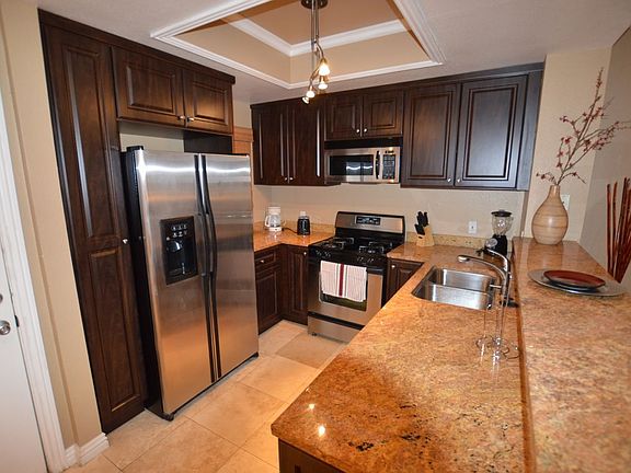 Lushly landscaped communityCrown moldingDeep closet spaceGranite counter topsStainless steel refrigeratorStone and carpet flooring