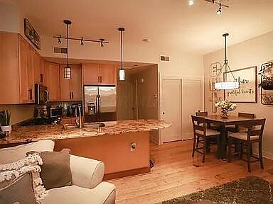 One of a kind garden unit offers open concept, upgraded antique maple hardwood, custom natural maple cabinets, walk-in closet was made larger & has a custom organized closet system recently installed. Upgraded hardware, lighting & fixtures! The stackable, front load GE W/D may remain w/the home. Condo lives much larger than it is w/ 9.5 foot ceilings & lots of natural light via oversized windows. Gated & fenced in brick patio adds great entertaining space! Garage is located behind the unit & owner has added tons of wall storage! Neighborhood Launch offers a true neighborhood feel & convenient to Hills Market, restaurants, library, & downtown venues! Optional membership in gorgeously renovated church/community center w/pool, high end fitness studio & theater room. Tax abatement until 2026!