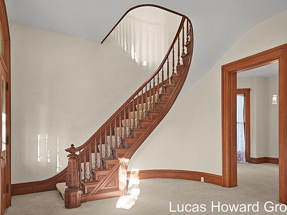 Original woodworkScreened porchAttached garageLight-filled airy roomsCurved wallsRed brick main streetItalianate home