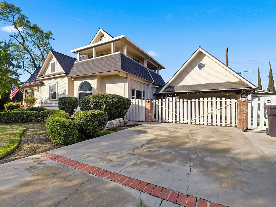 Majestic curb appeal meets modern versatility in this rare Tulare property. Anchored by a 1905 vintage residence of approx. 2,273 sq ft, the property exudes character with a sweeping front porch, classic brick fireplace, and charming window seats. The floor plan defies its age, offering a renovated kitchen that blends period charm with modern function, and a formal dining room that opens to a flexible office/den. A true rarity for the Valley, the home features a finished basement with a bedroom, bath, and living area—a naturally cooled sanctuary perfect for a media room or private suite. Upstairs, the owner's retreat boasts dual closets and a spa-inspired bath with a sculptural floating tub. The grounds are an oasis of mature landscaping, featuring a sparkling swimming pool and a recently finished garage with a utility sink/laundry center. The crown jewel is the standalone ADU at 278 Merritt Ave. This 1bd/1ba unit features a full kitchen, living room, and a private yard with a spa. It offers incredible potential for income or multi-generational living. Two homes, distinct and private, on a massive 19,000+ sq ft lot. A singular opportunity to own a piece of history that pays you back.