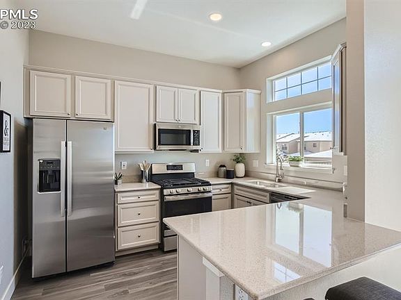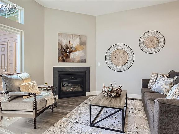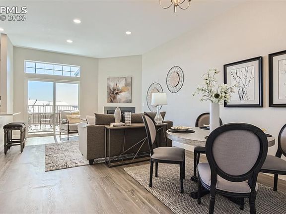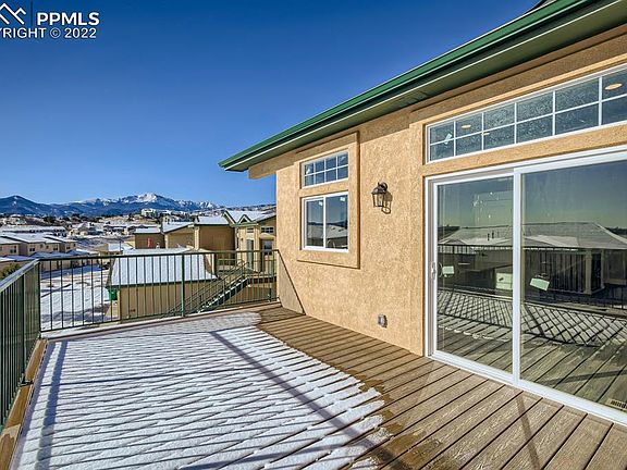READY FOR IMMEDIATE SALE! Gorgeous new 3 bedroom 3 bathroom townhome in the desirable Rockrimmon area! Enjoy stunning mountain views and picturesque sunsets from your large private deck. Spacious open concept living and dining area, perfect for entertaining or just relaxing. The space is light, bright and open featuring 10 foot ceilings, recessed lighting, transom windows and a gas fireplace. Custom builder finishes throughout. The designer kitchen includes Stainless steel appliances, gas stove, 42 inch tall modern cabinetry, beautiful quartz counter tops with a peninsula breakfast bar. The Master Ensuite has a sliding glass door opening to your private patio, perfect spot to enjoy your morning coffee. Large walk in closet, dual sinks, free standing shower, tub, heated floor pad, private water closet, and beautiful tile. Second bedroom may also be used as an office/den with a full bathroom across the hall. Third large bedroom and third full bathroom are on the lower level along with a family room space. Oversize 2car garage. This lovely community features a pool, hot tub, gym, game room and a community center that may be reserved for resident private parties. This townhome has the perfect location, easy access to I25, District 20 schools, near UCCS, Ute Valley Park, hiking trails, restaurants, University Village shopping and Garden of the Gods.