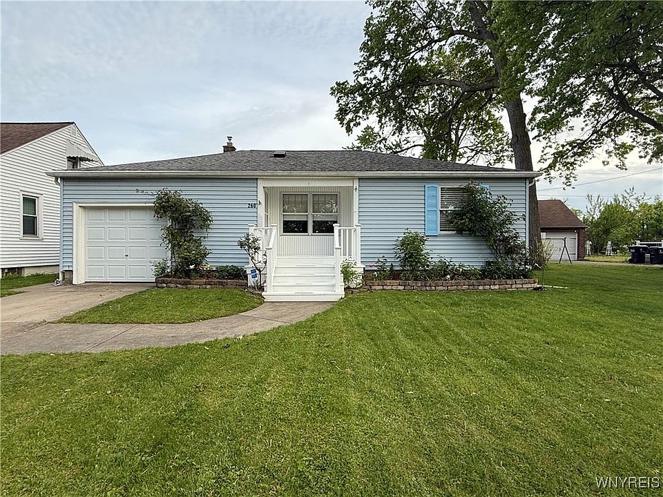 Beautiful 2 bedroom, 1 bath ranch located in a nice tree-lined neighborhood. This property features two nice size bedrooms, large living room, nice size eat in kitchen/sky lighting, formal dining room, full size basement, large fenced in yard, front yard invisible fencing, and attached garage.