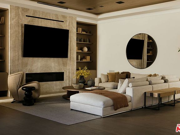 Set behind gates on one of Brentwood's most coveted streets, this newly completed estate by architect Philip Vertoch and designer Magni Kalman embodies timeless sophistication and modern refinement. Thoughtfully designed to balance grandeur with livability, the home unfolds across 9,515 square feet of light-filled interiors, complemented by a beautifully appointed guest house and expansive, resort-like grounds. A striking double-height entry, crowned by a skylight, creates an immediate sense of arrival -- welcoming in natural light and setting the tone for the exceptional craftsmanship found throughout. Classic brick architecture, soaring ceilings, steel-framed windows and doors, and artisanal millwork blend seamlessly to create a sophisticated yet inviting atmosphere. Designed for both intimate moments and grand entertaining, the main level flows effortlessly from formal living and dining spaces to an expansive family room and chef's kitchen, where European-style cabinetry, Taj Mahal natural stone countertops, and premium Wolf appliances anchor the heart of the home. Upstairs, the primary suite is a sanctuary, complete with a sitting room, dual-sided fireplace, private terrace, dual dressing rooms, and a stone-clad ensuite with a dual shower and soaking tub. Outdoors, nearly half an acre of manicured grounds provides a backdrop for elevated entertaining, featuring an outdoor kitchen, pool, spa, cold plunge, and sundeck, while the guest house offers versatile space for hosting, wellness, or extended stays. Enhanced by full home automation, supremely equipped for in-home staff, and set moments from Brentwood's finest dining, shopping, and the coast, this residence delivers luxury living with discernment.