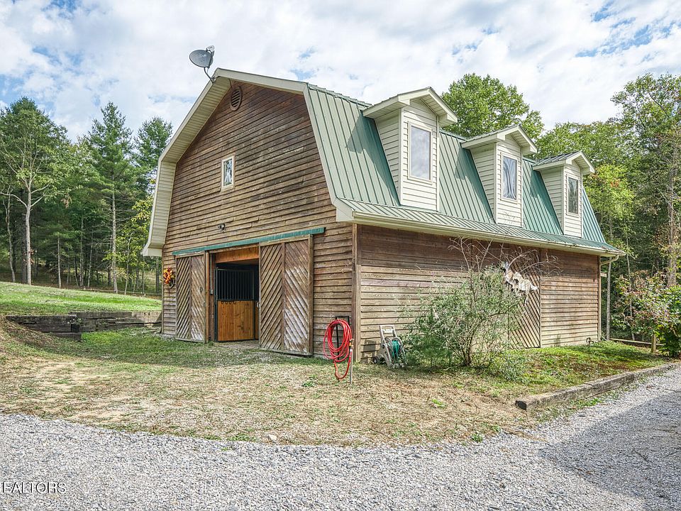 This unique 2bed/2 bath cabarn sits in a beautiful subdivision, Spruce Creek Acres, next to the Big South Fork National Park. When you enter the property you will immediately notice the land has been recently cleared and new pasture has been planted. You will travel down a long newly built driveway that leads you to the home. Take note that the main floor or lower level is the barn itself where you will find 5 10'x12' horse stalls with hay racks and saddle racks for each stall. You will also discover the Laundry room/Utility room on this level as well. This level also has a separate room off the back for storage of tools and such. Taking the stairs upstairs from the barn area you will discover the beautiful bowling alley floors. Yes I said bowling alley flooring. The floor structure is on 12'' centers per the original owners. The walls and ceilings are from a local lumber yard and are made of Norwegian Spruce tongue & groove. The kitchen now features a double oven, propane range top on the maple top island, a dishwasher and refrigerator. The cabinets are made of maple also. The property comes with a 330 gallon propane tank. This property also features a fresh water spring that runs year round. This property is priced to sale and is being sold as is. Call today to schedule your showing appointment. More photos to come soon.