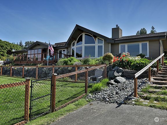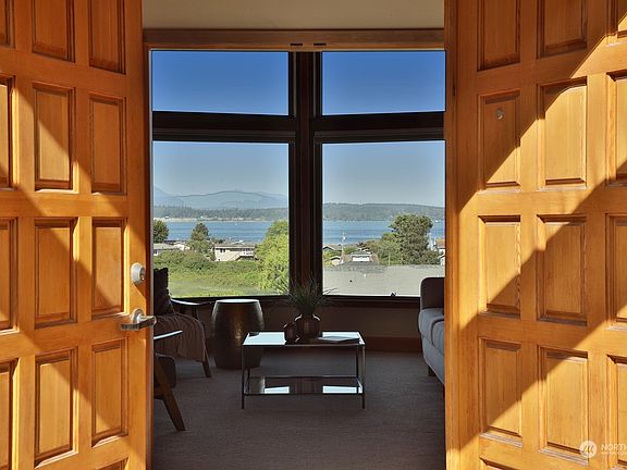 Sweeping, panoramic views of Olympic Mtn range, shipping lanes & Bush Point from this beautiful home. Classic Lindal Cedar home is well maintained and situated on a combined double lot. 2 BR, 1.75 BA plus bonus shower & utility sink in laundry room. Beautiful cook's kitchen offers a spacious island, 6 burner gas stove, mixer lift, Canyon Creek cabinets & sunroom to enjoy the views! Oversized three car garage. Entertainment sized deck enjoys the scenery & mature landscape. Plus a fenced dog run & additional paved off street parking for guests or toys. New owners will enjoy heated cherry wood floors, kitchen w updates, California closets, 100 yr/old fireplace mantle and of course, the amazing view! ADDITIONAL BUILDABLE LOT INCLUDED!