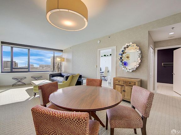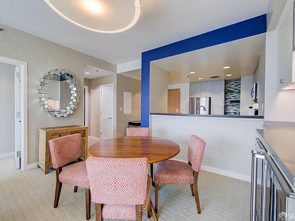 Welcome to 260 King Street Unit 1103, a corner unit with a private balcony at The Beacon where modern convenience offers you an unparalleled living experience. This 2-bedroom, 2-bathroom split-floor plan unit is more than just a home; it's a haven of contemporary elegance with views of Oracle Park, the Bay, and peekaboo of Downtown. Updates introduced a range of enhancements to the stylish kitchen with stainless steel appliances, a modern backsplash, and glass shelves, a built-in bar, cabinets, and wine fridge in the dining room, and in the bedrooms: California closets, an updated primary bath, and built-in Murphy bed, desk, and shelves. Beacon amenities include 24-hour front desk, fitness center, pool/jacuzzis, sauna, dog park, clubhouse, and business center. With optimized storage solutions and thoughtful design choices, Beacon Unit 1103 offers a blend of aesthetics and convenience, with its proximity to Caltrain/Muni, Safeway, restaurants, and freeways.