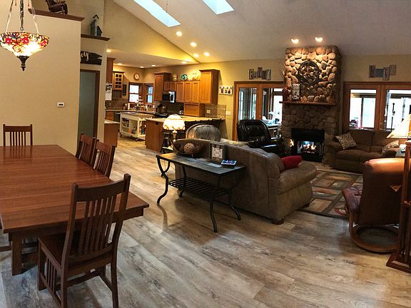Roll down the windows and smell the pine trees as you pull into the secluded Pine Canyon Lake. Choose any of the three decks to take in all the peace and tranquility this home has to offer. With four bedrooms and three baths, there is plenty of space to accommodate your growing family or guests. There is new flooring in this open concept home and all three bathrooms have been updated in 2017. Quartz countertops and stainless steel appliances adorn the kitchen. The two sided field stone fireplace is perfect to stay warm on the cold winter nights. Off the large master suite is an expansive wrap around deck that makes this home truly feel like a weekend retreat. In addition to the two car detached garage, the one car heated garage in the basement can easily converted into additional living space. Off the back deck is a large dog run so no tie outs are needed. 3 garden sheds provide ample storage for all of your garden tools and outdoor toys. A pontoon boat comes with the home so you can enjoy the pristine Pine Canyon Lake during the warm weather months. Furnishings negotiable.